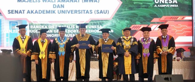Gelar kehormatan doktor honoris causa menjadi yang pertama usai Unesa dinobatkan sebagai Perguruan Tinggi Berbadan Hukum (PTNBH) per 20 Oktober 2022 melalui Peraturan Pemerintah RI Nomor 37 Tahun 2022.
