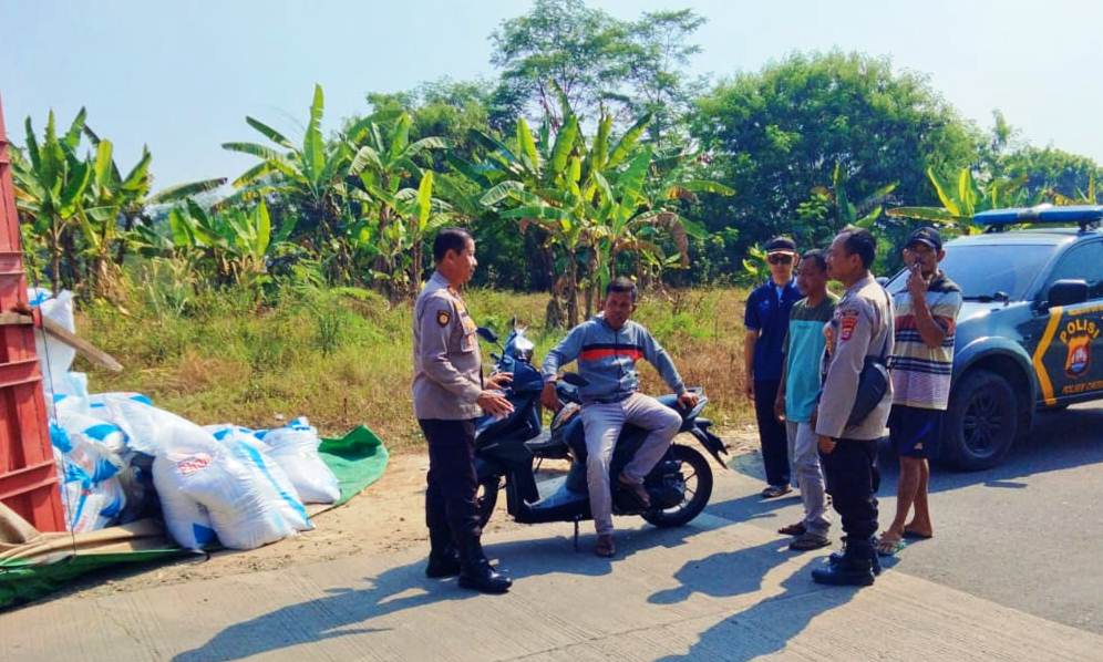 Insiden kecelakan tunggal truk pupuk bersubsidi terguling di Cikeusal