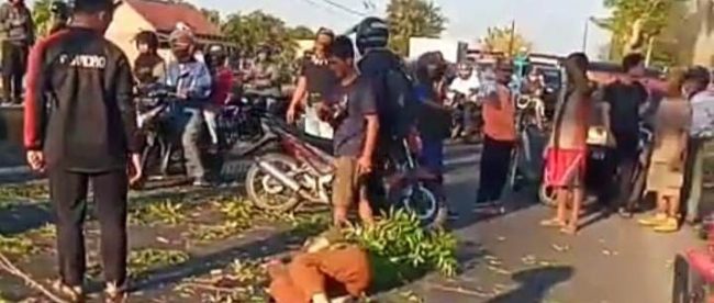 Peristiwa yang terjadi diluar dugaan itu mengakibatkan laju motor yang dikemudikan korban terhalang frontal, tubuhnya terhempas di jalan beraspal ring road, masuk Kelurahan Sogaten, Kecamatan Manguharjo.