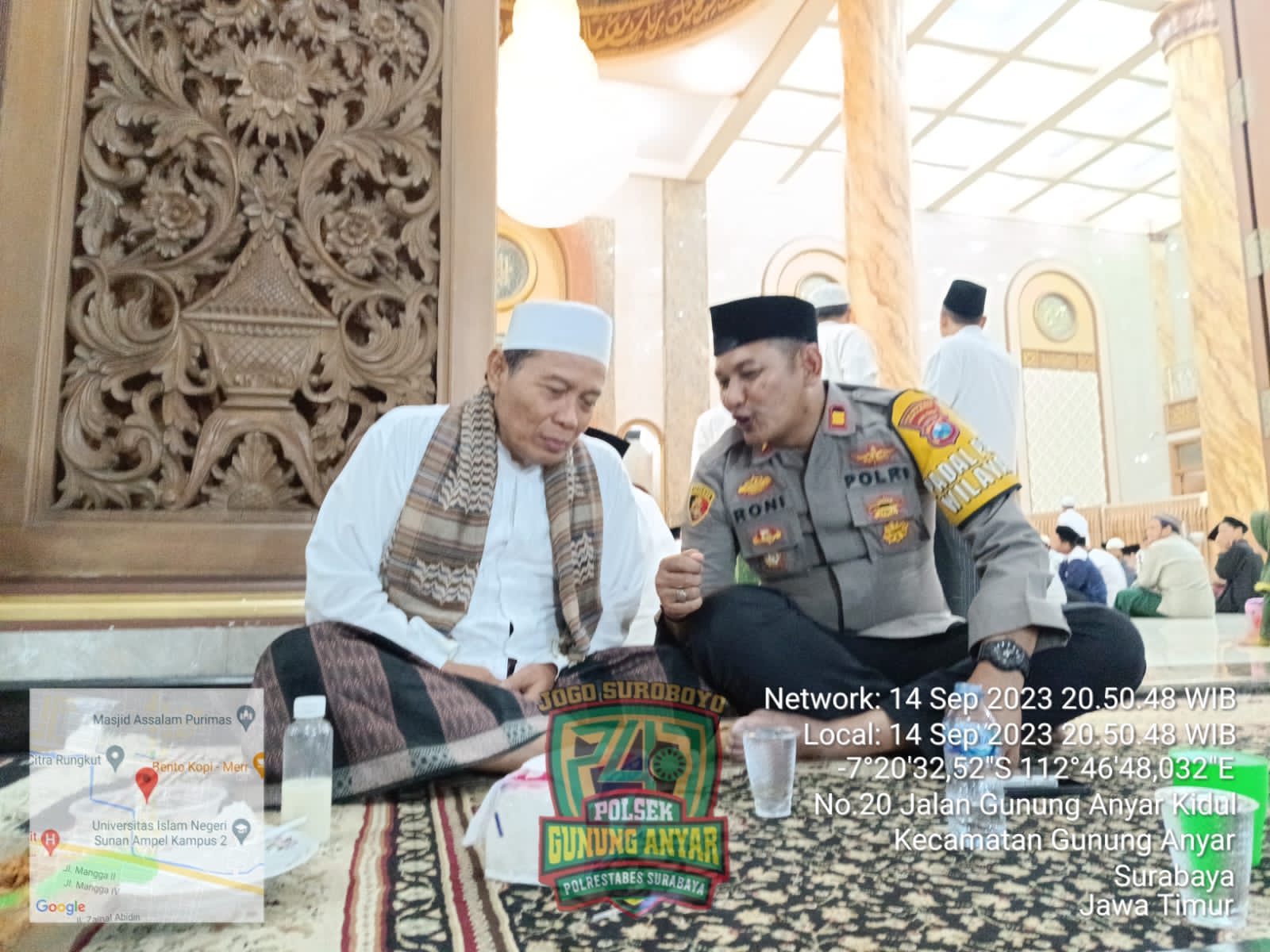 Kapolsek Gunung Anyar Iptu Roni Ismullah bersama anggota melaksanakan giat Silaturahim di masjid Baitusalam Gunung Anyar Kidul