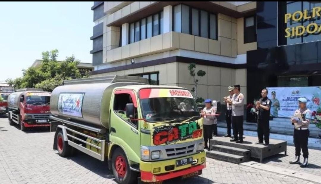 Bantuan air bersih sebanyak 40.000 liter disalurkan Polresta Sidoarjo