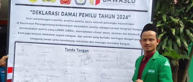 BOGOR (KM) – Pimpinan Anak Cabang Gerakan Pemuda Ansor kecamatan Parungpanjang Kabupaten Bogor ikut mendeklarasikan pemilu damai tahun 2024 di kantor kecamatan Parungpanjang Jl.Muhamad Toha, Jumat (10/11).