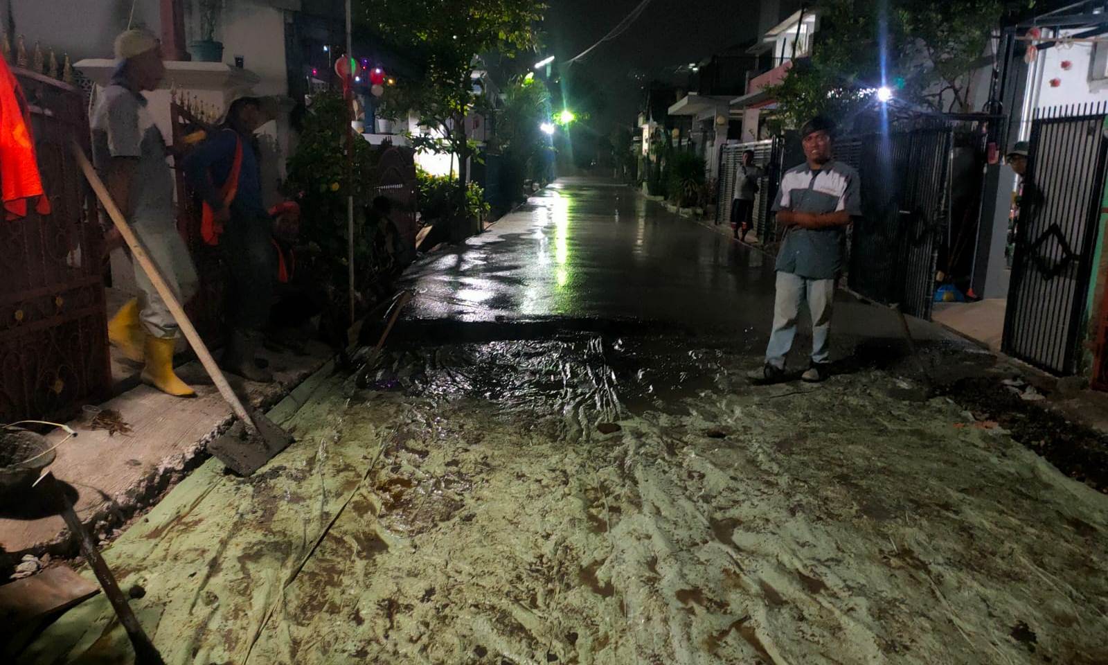 4baa5870-169f-4ef7-aa3d-d093e3251016 Kegiatan Peningkatan Jalan Lingkungan Jl Mawar 5 - 10 Perum Taman Tridaya Indah 1 Rt 010 Rw 010 Desa Tridaya Sakti, dikerjakan kontraktor CV, Gaza Utama