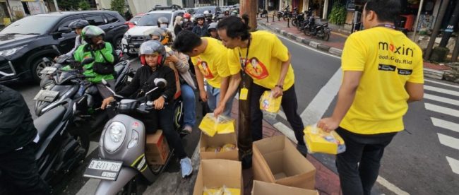 JAKARTA (KM) – Sejumlah karyawan Maxim Jakarta melakukan kegiatan berbagi takjil di sekitar simpang lampu merah Halte Transjakarta Jatipadang, Pejaten Jakarta Selatan. Kegiatan berbagi takjil ini dilakukan dalam rangka memeriahkan suasana bulan suci Ramadan.