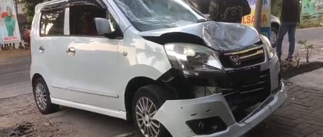MAGETAN (KM) – Kecelakaan tragis terjadi di Jalan Raya Desa Madigondo, Kecamatan Takeran, Magetan, Jawa Timur, pada Sabtu petang (29/6/2024). Sebuah minibus melaju kencang dan menghantam seorang pengendara motor penjual es krim keliling yang bergerak dari arah berlawanan. Akibat benturan yang kuat, pengendara motor terlempar dan jatuh di atas kap minibus.