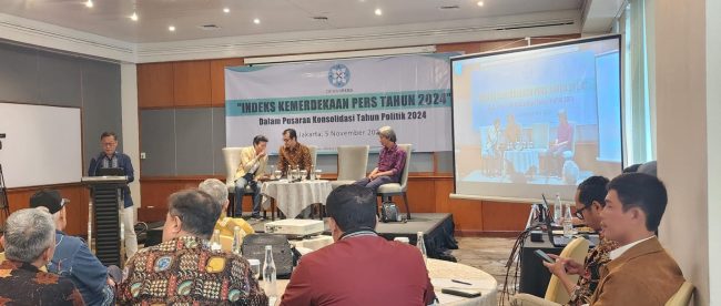 JAKARTA (KM) – —Angka indeks kemerdekaan pers (IKP) nasional untuk kedua kali kembali mengalami penurunan. IKP tahun 2024 mencapai angka 69,36. Angka itu memberi makna, bahwa pers nasional berada dalam kategori cukup bebas.