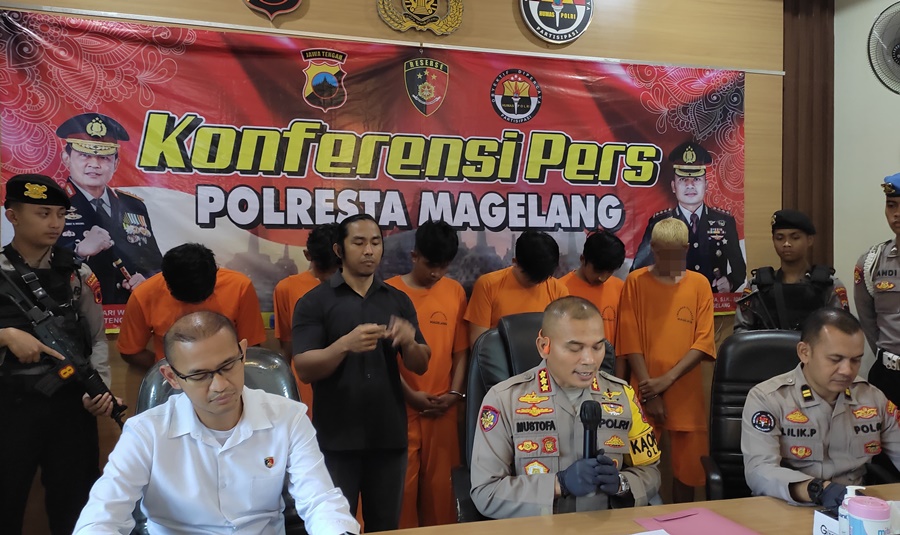Konferensi Pers Pelaku tawuran bersenjata tajam Minggu (29/12/2024) dini hari di Ruang Media Center Mapolresta Magelang