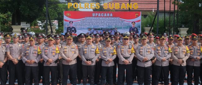 SUBANG (KM) – Polres Subang menggelar Upacara Korps Raport Kenaikan Pangkat yang bertempat di lapangan apel Tatang Trawang Tungga, Kamis (2/1).