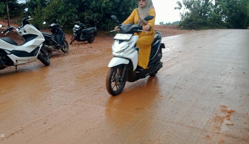 jalan licin akibat ceceran tanah dari truk pengangkut tanah