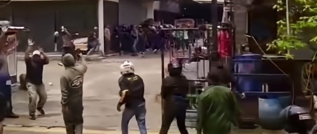 Video itu memperlihatkan kelompok ormas yang berada di tengah jalan terlibat bentrok dengan kelompok matel yang berada di dalam kawasan ruko.