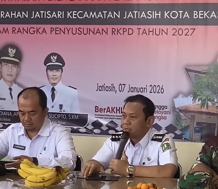 WhatsApp Image 2026-01-23 at 20.03.21 Camat Jatiasih Dian Herdiana, A.P, M.SI,,. Pimpin Rapat Minggon di Aula Kantor Kelurahan Jatisari, Bekasi Kota, Rabu (22/1/2026). Foto: (ist) Kupas merdeka