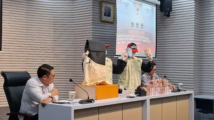 Plt Deputi Penindakan dan Eksekusi KPK, Asep Guntur Rahayu (kiri) bersama Juru Bicara KPK, Budi Prasetyo (kanan) memperlihatkan barang bukti kasus dugaan suap dan gratifikasi terkait importasi barang KW pada Ditjen Bea dan Cukai Kemenkeu, di Gedung Merah Putih, Kamis (5/2/2026).