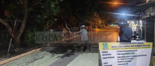Bekasi (KM) – Pekerjaan betonisasi jalan menggunakan Anggaran Pendapatan Belanja Daerah (APBD) 2026 Kota Bekasi, melalui Dinas Bina Marga dan Sumber Daya Air (DBMSDA) dengan Uraian Pekerjaan, Pemeliharaan Jalan Kota Bekasi Jalan Aster Raya RT.11 RW. 05 Kelurahan Kota Baru, Kecamatan Bekasi Barat.
