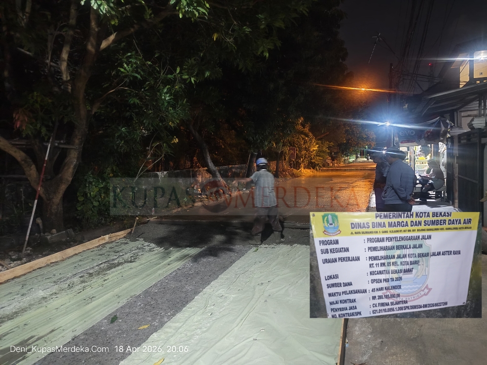 Keterangan foto: Pemeliharaan Jalan Kota Bekasi Jalan Aster Raya RT.11 RW. 05 Kelurahan Kota Baru, Kecamatan Bekasi Barat.