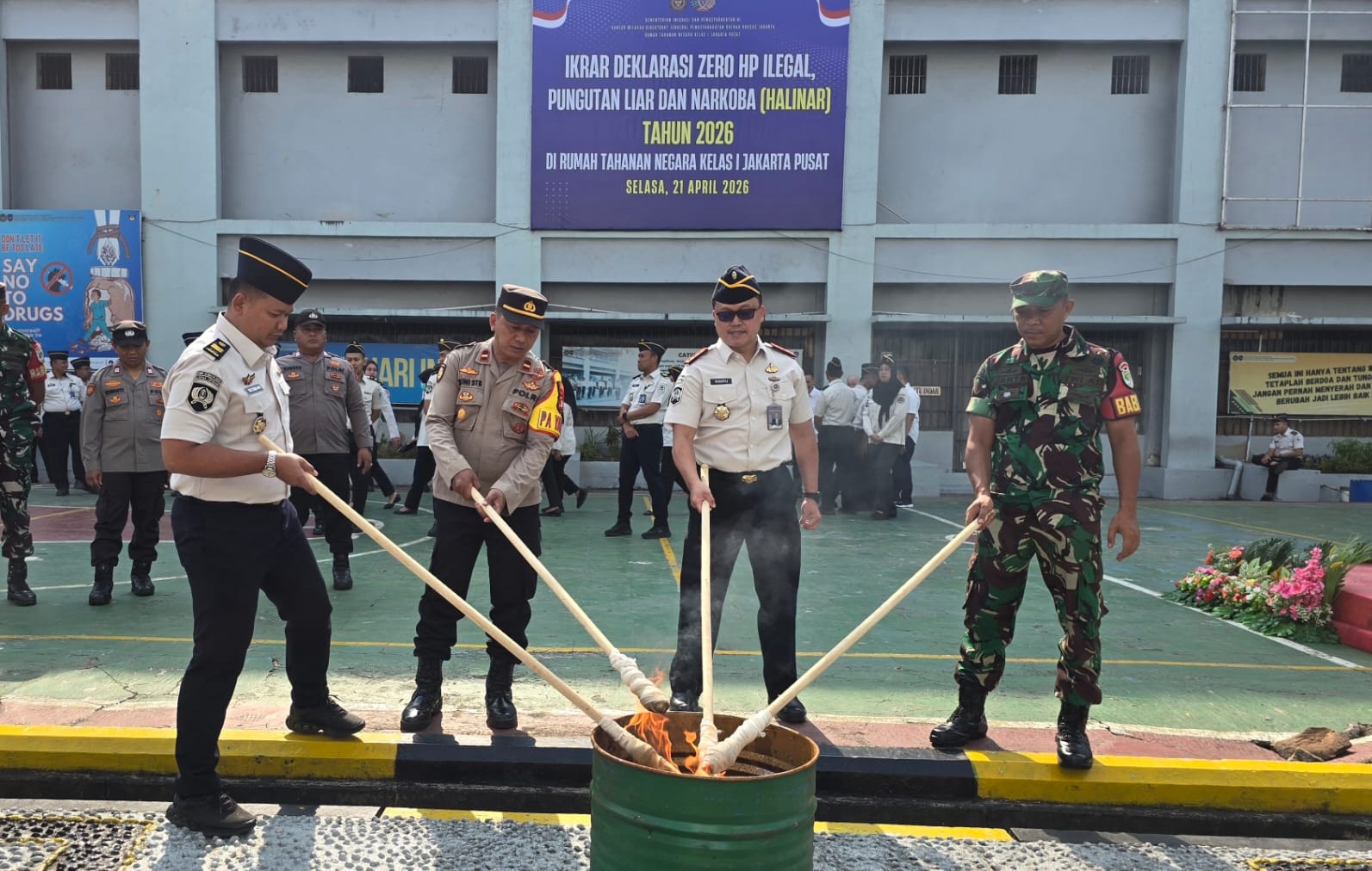 Rutan Salemba memusnahkan ratusan handphone hasil sitaan pada Selasa (21/4/2026)