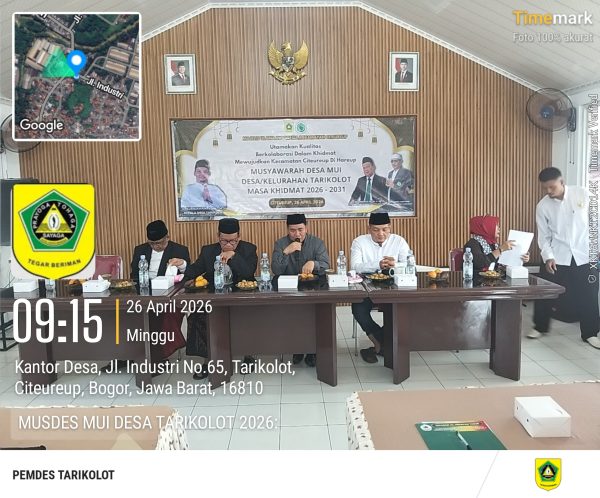 BOGOR (KM) – KH Ujang Saepudin resmi terpilih kembali sebagai ketua MUI Desa Tarikolot Kecamatan Citeurep Kabupaten Bogor masa Bhakti 2026-2031, penetapan ini dilaksanakan dalam musyawarah Desa Tarikolot Minggu (26/4/2026).