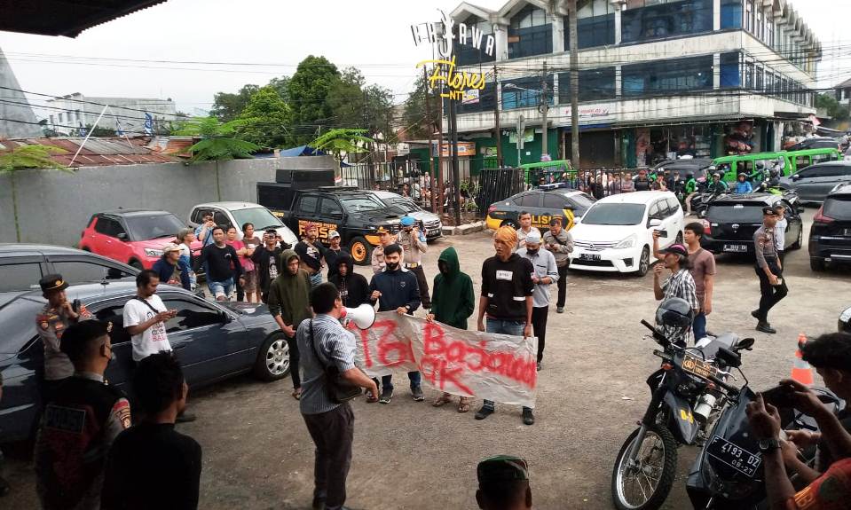 Massa Front Rakyat Revolusioner (FRR) menggelar demonstrasi untuk menolak operasi Cafe Bajawa, Kamis (19/1/2023)