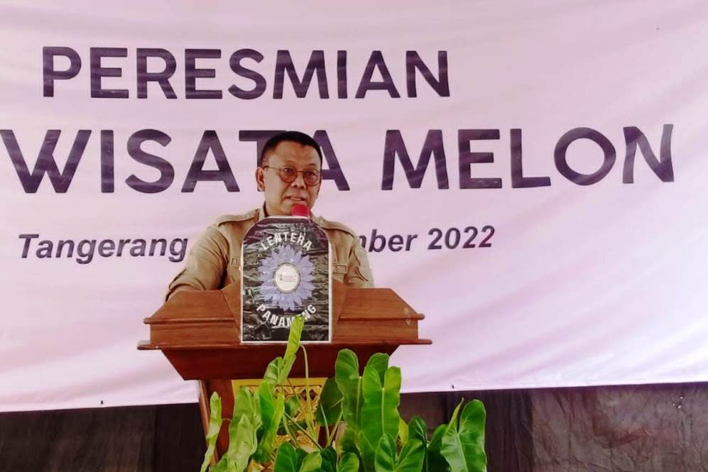 Kepala Dinas Pertanian dan Ketahanan Pangan Kabupaten Tangerang, Asep Jatnika mewakili Bupati Tangerang meresmikan kawasan eduwisata melon (Dok/KM)