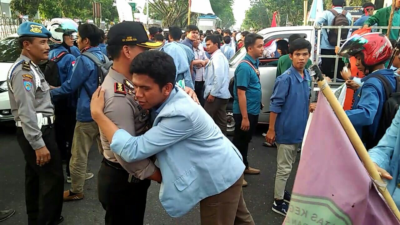Mahasiswa pengunjuk rasa saat izin pamit kepada Wakapolresta Pekanbaru AKBP Edy Suardi (dok. KM)