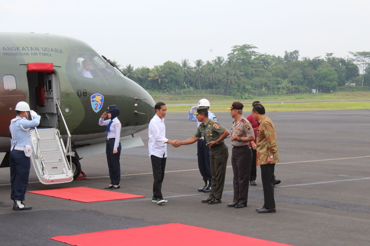 IMG-20180424-WA0116.jpg Presiden Joko Widodo disambut Pangdam IV/Diponegoro Mayjen TNI Wuryanto bersama Kapolda Jateng Irjen Pol Condro Kirono dalam kunjungannya ke Cilacap dan Banjarnegara, Senin 23/4/2018 KupasMerdeka.com Berita Nasional