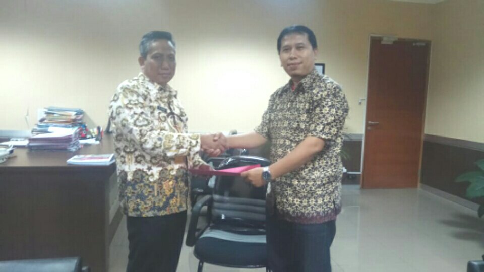 Ketua panitia workshop jurnalistik saat menyerahkan laporan hasil kegiatan kepada Kadisdik Kota Depok, Jumat 13/9 (dok. KM)