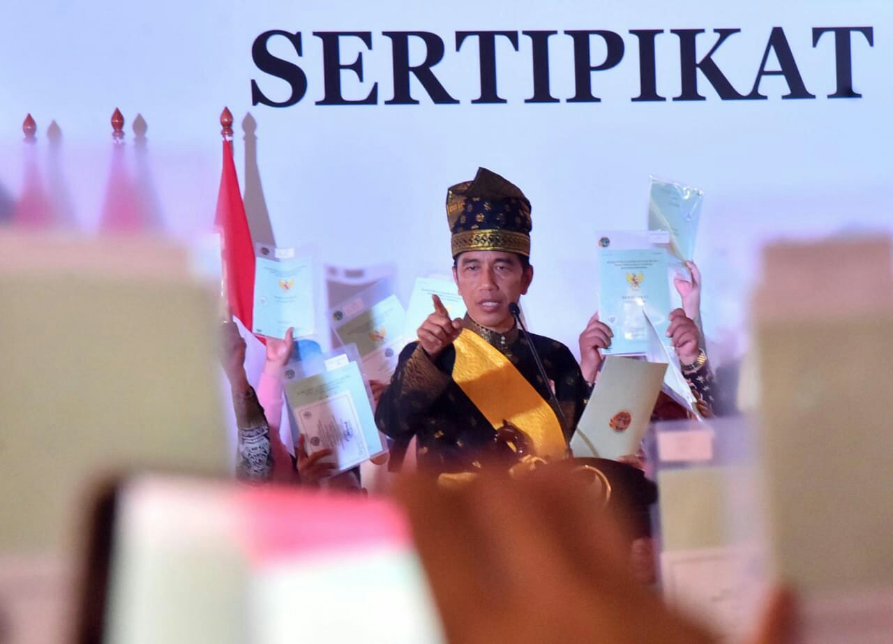 img-20181215-wa0090-875351432.jpg Presiden Joko Widodo membagikan sertifikat kepada warga saat kunjungannya ke Riau, Sabtu 15/12/2018 (dok. Setpres) KupasMerdeka.com BErita NAsional