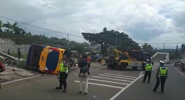 img-20190501-wa0080-549257602.jpg Sat Lantas Polres Bogor Evakuasi Kecelakaan Tunggal Bus di Tanjakan Selarong, Jalur Puncak (dok. KM) KupasMerdeka.com Berita Bogor