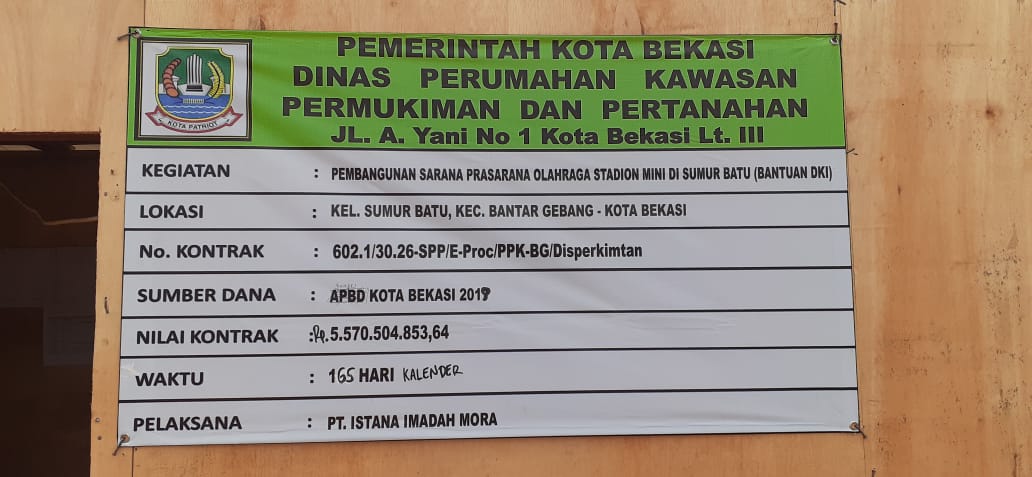 IMG-20190814-WA0032.jpg Papan nama proyek pekerjaan stadion mini di Sumur Batu, Kecamatan Bantar Gebang, Kota Bekasi (dok. KM) Kupasmerdeka.com Berita Bekasi