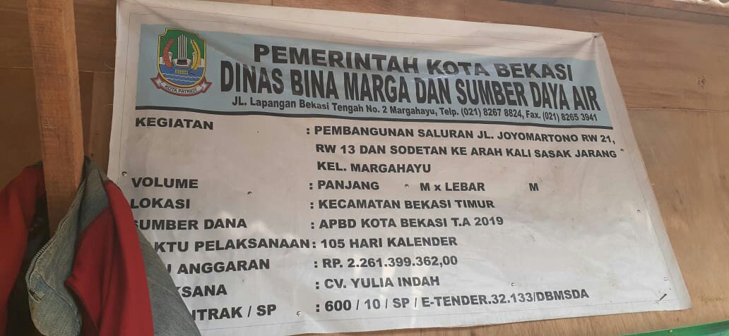 img-20191113-wa00001930811061.jpg Papan nama proyek yang dikerjakan oleh CV Yulia Indah, yang diduga beralamat fiktif (dok. KM) Kupasmerdeka.com Berita Bekasi
