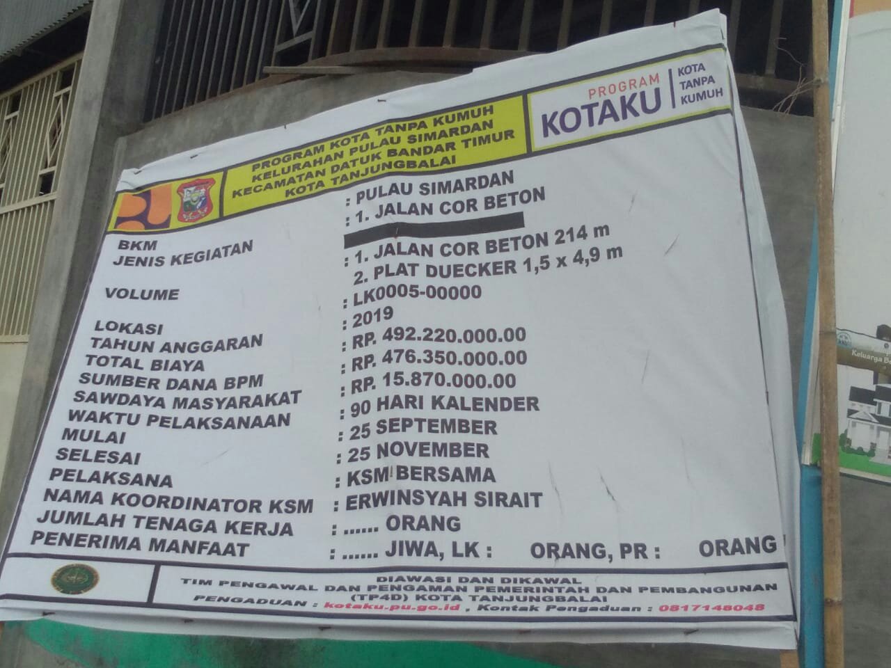 img-20191115-wa0088-444774210.jpg Plang proyek pengecoran jalan di Kelurahan Pulau Simardan, Kecamatan Datuk Bandar Timur, Tanjungbalai (dok. KM) Kupasmerdeka.com Berita Sumut