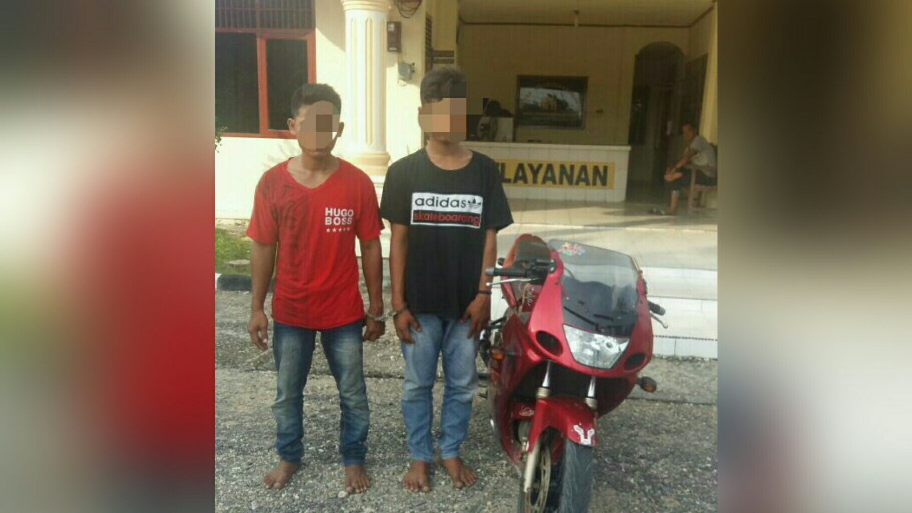 photogrid_1532271430112383187156.jpg Pelaku pencurian dengan kekerasan yang diamankan oleh Polsek) Kuras, Pelalawan, Kamis 19/7 (dok. KM KupasMerdeka.com Berita Riau