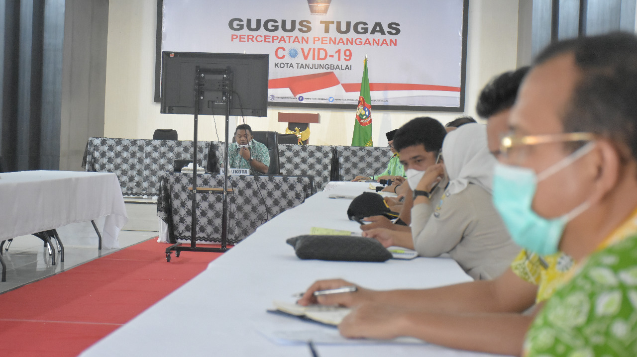 wp-1588336845412.jpg Wali Kota Tanjungbalai M. Syahrial memimpin Rapat Koordinasi Tim Gugus Tugas Percepatan Penanganan COVID-19 untuk upaya pemulangan TKI dari Malaysia, Kamis 30/4/2020 (dok. KM) KupasMerdeka.com Berita Tanjungbalai