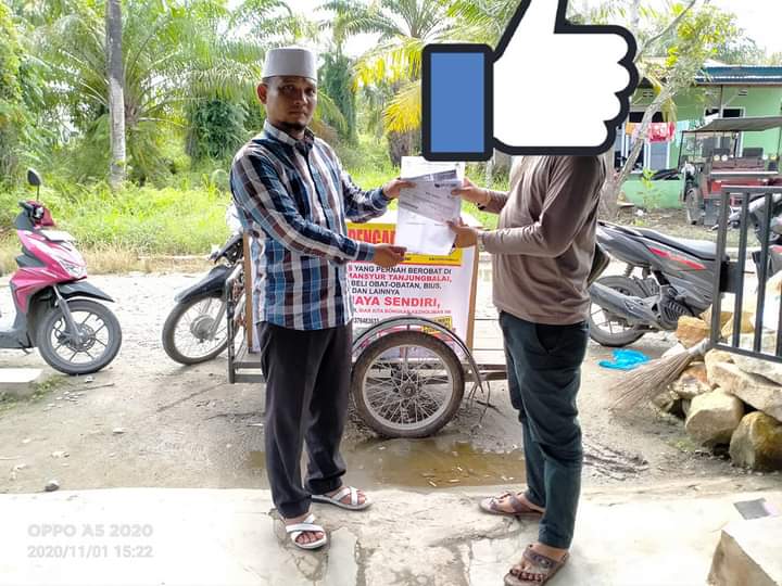 Warga yang tinggal di daerah Desa Simpang Tiga Kec. Simpang 4, Kabupaten Asahan saat memberikan bukti kwitansi pembelian kantong darah yang diserahkan kepada Hafiz Eki Prayoga, Ketua DPD BKPRMI Kota Tanjungbalai (dok. KM)